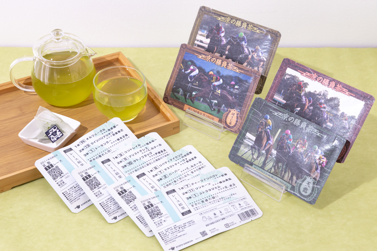 ごえん茶では、ティーバッグ入りのお茶をオリジナルパッケージで制作できます。10個からの名入れ、30個からの小ロット制作、3,000個以上の大ロット対応まで、展示会ノベルティ・周年記念品・販促・OEMに幅広く対応。