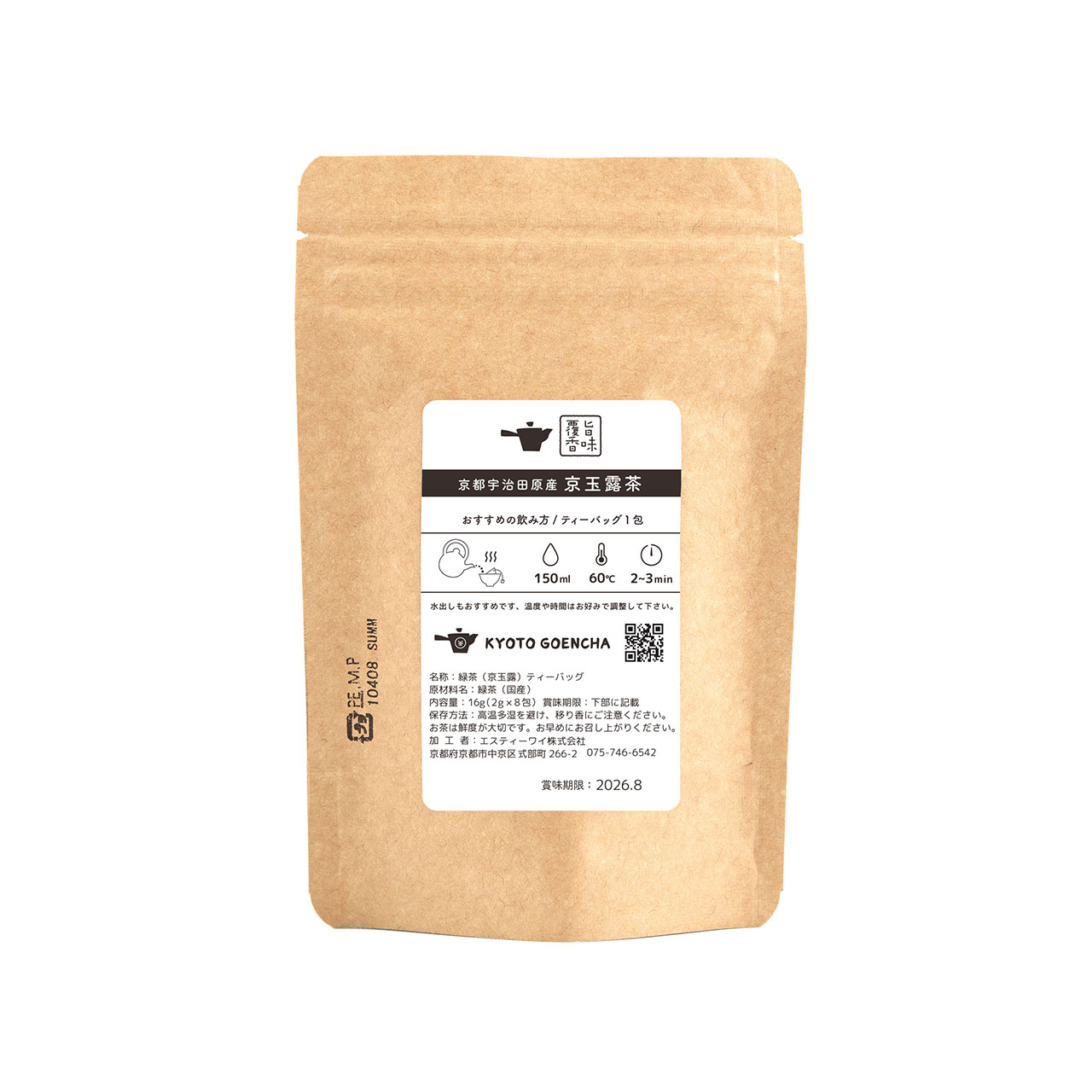クラフトチャック袋(中サイズ)のお茶(玉露ティーバッグ3包入の場合)別途消費税